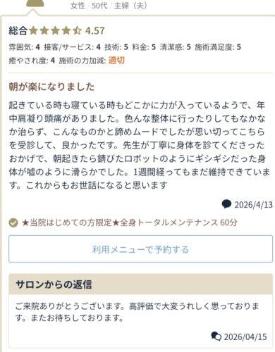 19年以上この業に携わってきた技術や知識を患者様へ提供させて頂きます。 心よりお待ちしております。 ご予約はこちらhttps://www.peakmanager.com/online/index/o4g1z5/eNpLtDK0qi62MjSyUsovKMnMzytJTI_PTFGyLrYys1IyMjcxNzRVsq4FXDD0_Auf 電話番号 075-951-1806 住所 〒617-0824 京都府長岡京市天神1-17-4 受付時間 月・火・木・金:9:00~12:30/15:30~20:00 水・土:9:00~13:00その後往診 休診日 日曜・祝(日によって診療している場合もございます。)お問い合わせ下さい。
