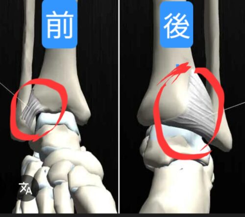 痛みを感じることが多いです。朝起こる痛みの場合でも、けい骨とひ骨を結ぶ靱帯(下記の画像)